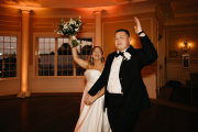 FSU themed uplighting for their entrance (FSU Alumni couple here!) , their dog on the cocktail napkins and favors that represented the exact first gift he gave her, on her 18th birthday. Along with a style just as classic as Sarah and her wedding gown bow, the day just kept on giving and giving.
